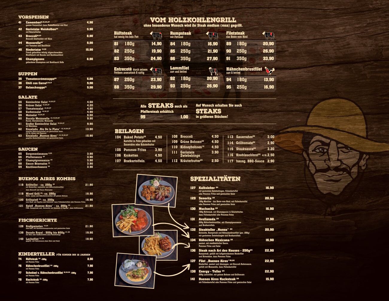 In der Zeit von Anfang der 70´iger Jahre bis heute hat sich viel verändert. Gegrillt wird aber immer noch traditionsgemäß, genau wie damals, auf einem Holzkohlegrill. So kommt das Fleisch, dass Sie in unserem Restaurant essen, z.B. aus Argentinien, wo die Weiderinder auf den unendlichen Weiten der fruchtbaren Pampa viel Bewegung haben und sich bei idealen Klimabedingungen nur von natürlichen, saftigen Futtergräsern ernähren. Nur diese natürliche Aufzucht verleiht dem Fleisch das einzigartige, auffallend kräftige Aroma.